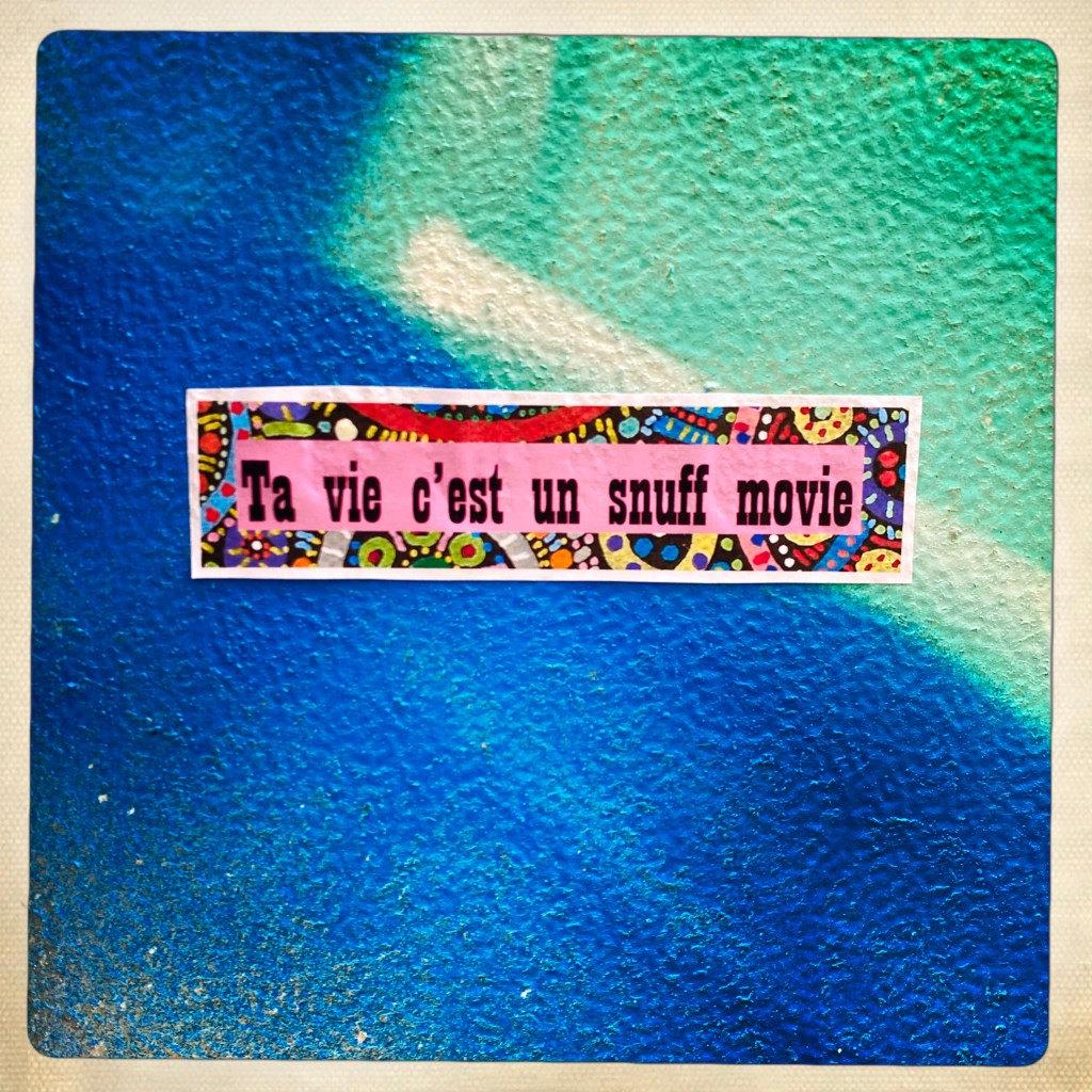 Dans ce sport sporadique au final c’est la pose qui reste mon moment préféré : choisir le moment (la nuit! Celle du soir ou du matin vu qu’on a l’embarras du choix), le lieu, le passage, la couleur du support, l’exposition… et surtout imaginer les réactions des gens, ceux qui se reconnaîtront même si je les connais pas et ceux qui se feront reconnaître à leur insu… ceux que ca fera sourire et ceux que ca offusquera…j’aime bien. Ça me fera toujours ricaner.