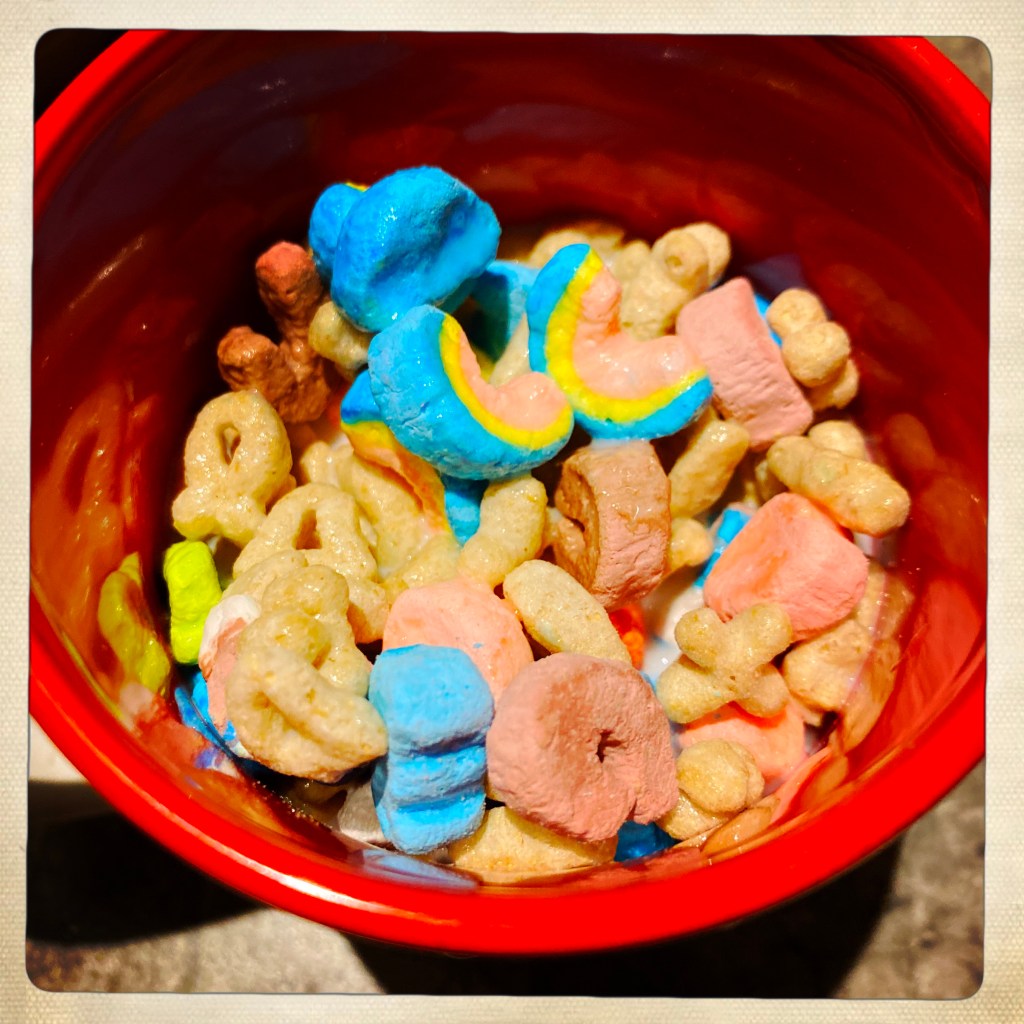 Du coup à 5 h on échafaudait des plans pour aller bouffer des lucky Charms dans la cuisine sans réveiller mamie qui dort sur le canapé de la cuisine. (Il y a un canapé dans la cuisine).