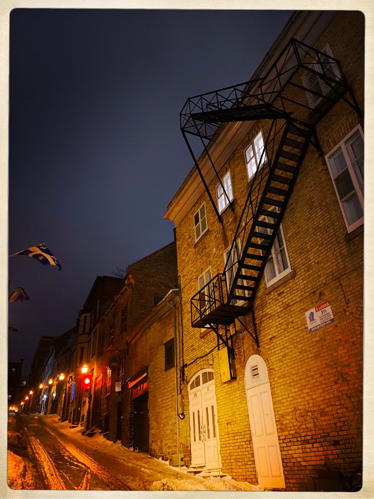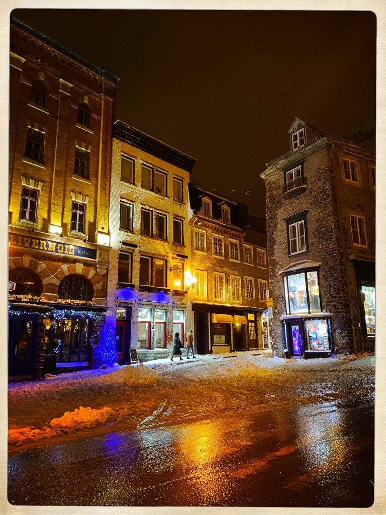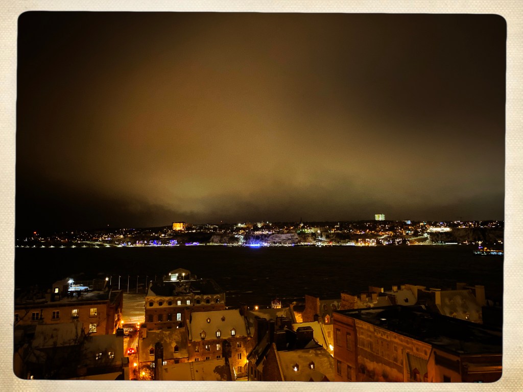 Après un épisode de repas en famille chez E (dans un appart et un quartier privés d’électricité (comme 75000 foyers ici aujourd’hui) nous repartons voir le Vieux Quebec.