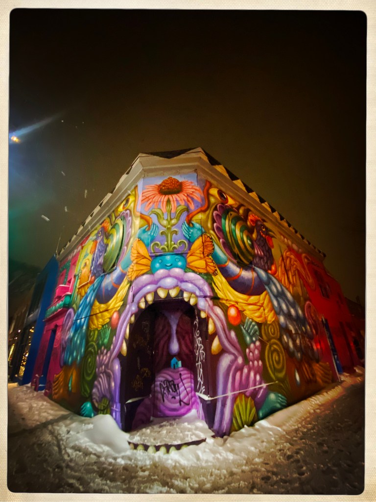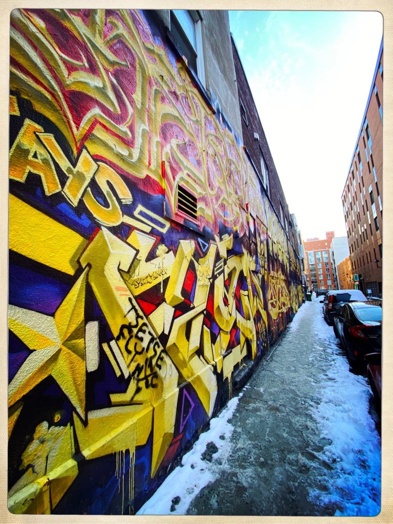 Il y a du street art PARTOUT, c’est bien simple on se croirait à Tenay, « l’autre capitale du street art ». Sauf qu’à Tenay tu n’as pas du sludge de neige fondue qui t’arrive aux chevilles, ni de cafés ouverts…