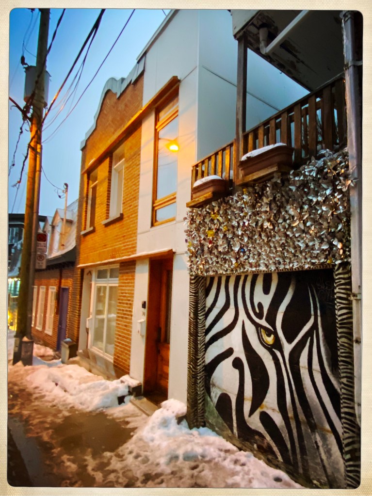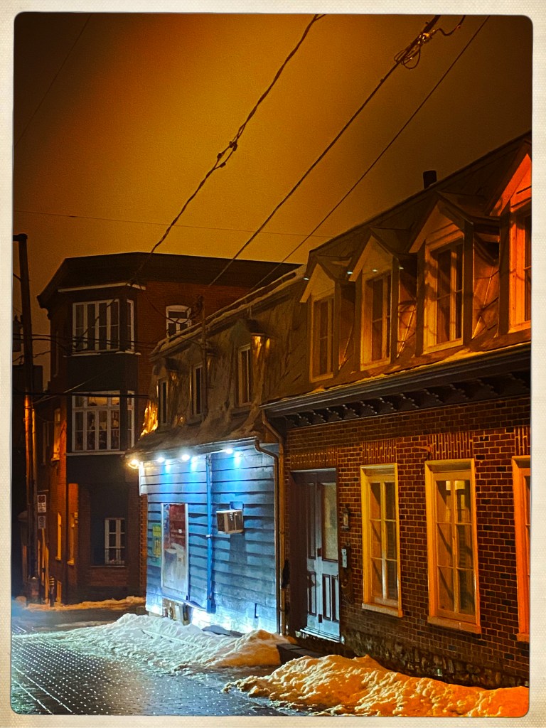 On enchaine sur Saint Jean Baptiste, un autre quartier un peu hipster, puis à nouveau le Vieux Quebec, nettement plus animé que le 25 décembre. On tombe sur un marché de noël improbable où quasi tous les chalets sont des microbrasseries locales différentes, sauf un chalet où danse une drag-queen. Iel est souriant.e mais je reste circonspecte. Peut être que j’ai vu la Vénus Noire il y a trop peu de temps et que c’est trop frais. En tous cas il y a de l’ambiance.
