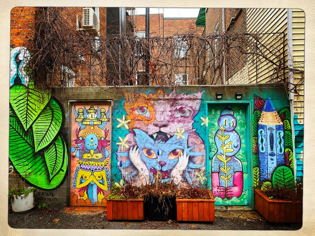 Entre le café et les bagels je tombe sur une ruelle regorgeant de pépites de street art. Je suis super contente.