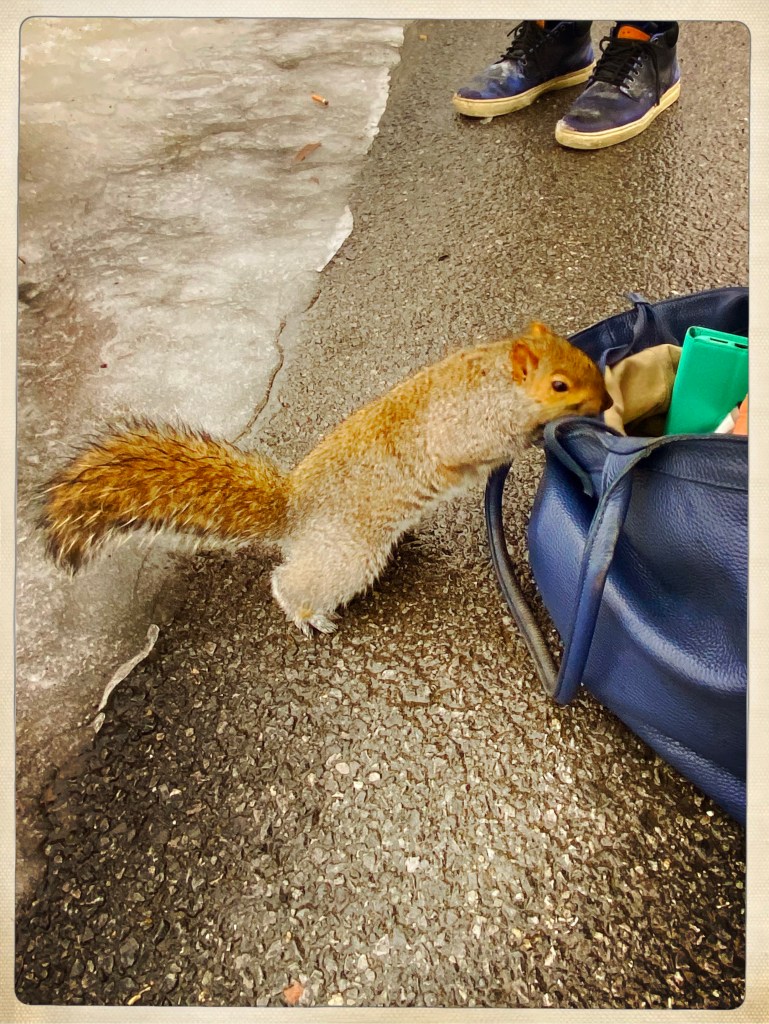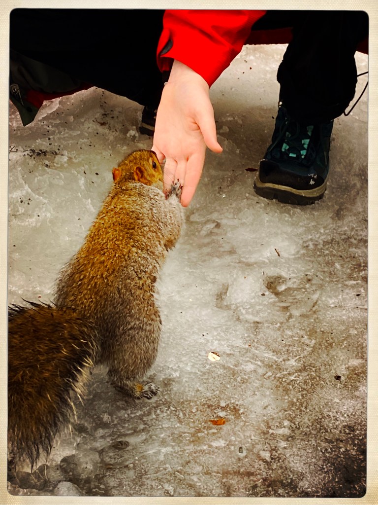 Quelques écureuils lascars viennent carrément fouiller nos sacs mais ça tombe mal. C’est probablement le seul moment des vacances ou ni Z ni E ne sont en train de manger un truc gras ou un truc frit ou un truc sucré. Rien dans les mains, rien dans les sacs non plus…les écureuils sont pas jouasses. Je crois même en entendre un grommeler « Ostie d’francais ».