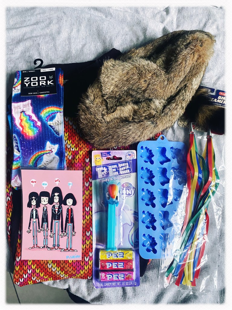 Côté shopping on a pas ramené grand chose. C’est même assez risible. Dans le top ten j’ai un distributeur de pez petit poney arc en ciel, des fanions pour mon guidon de vélo, des chaussettes absurdes et une robe vintage à 5 dollars trouvée en friperie. Et bien sûr, ma toque de Davy Crocket. Mais c’est très reposant aussi quand il n’y a pas (trop) de tentations. Surtout quand il n’y a pas trop de budget non plus.