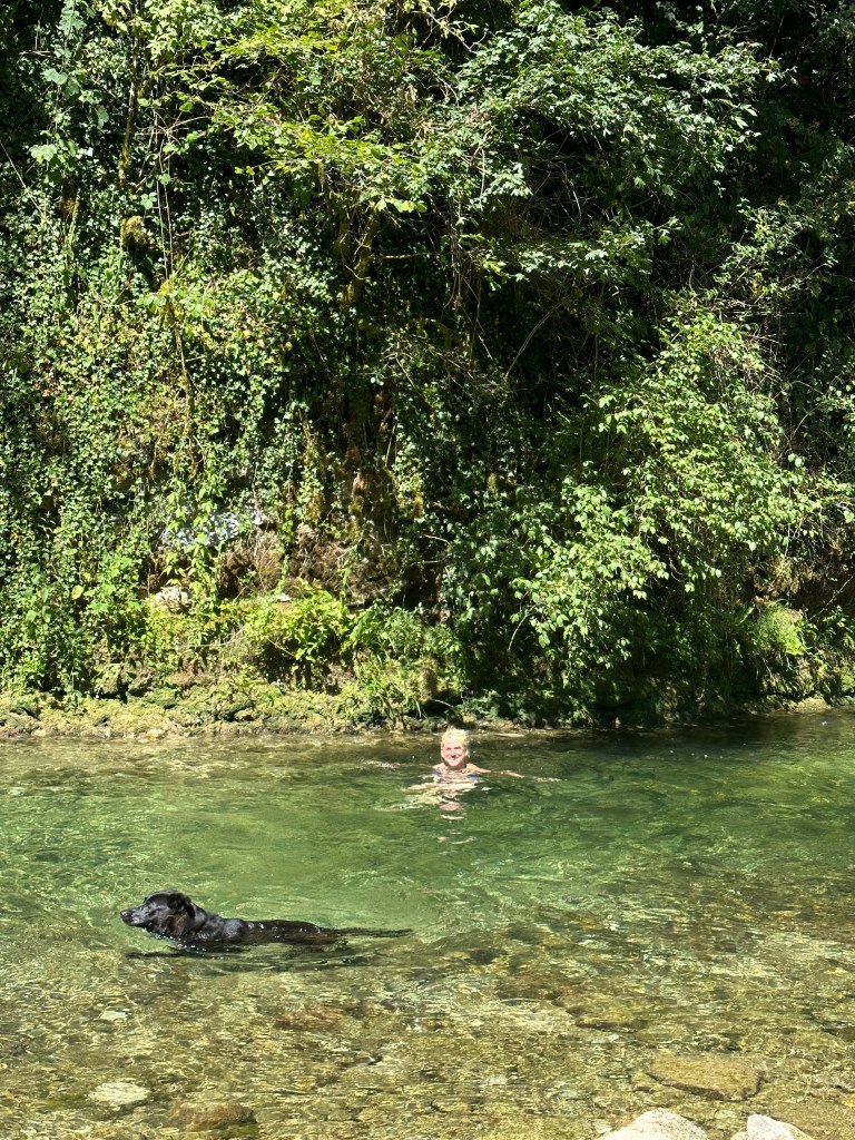 Et l’eau a 14 degrés, quand tu t’immerges ça te rafraîchit les idées…(et espérons aussi que ça raffermisse un peu les fesses).