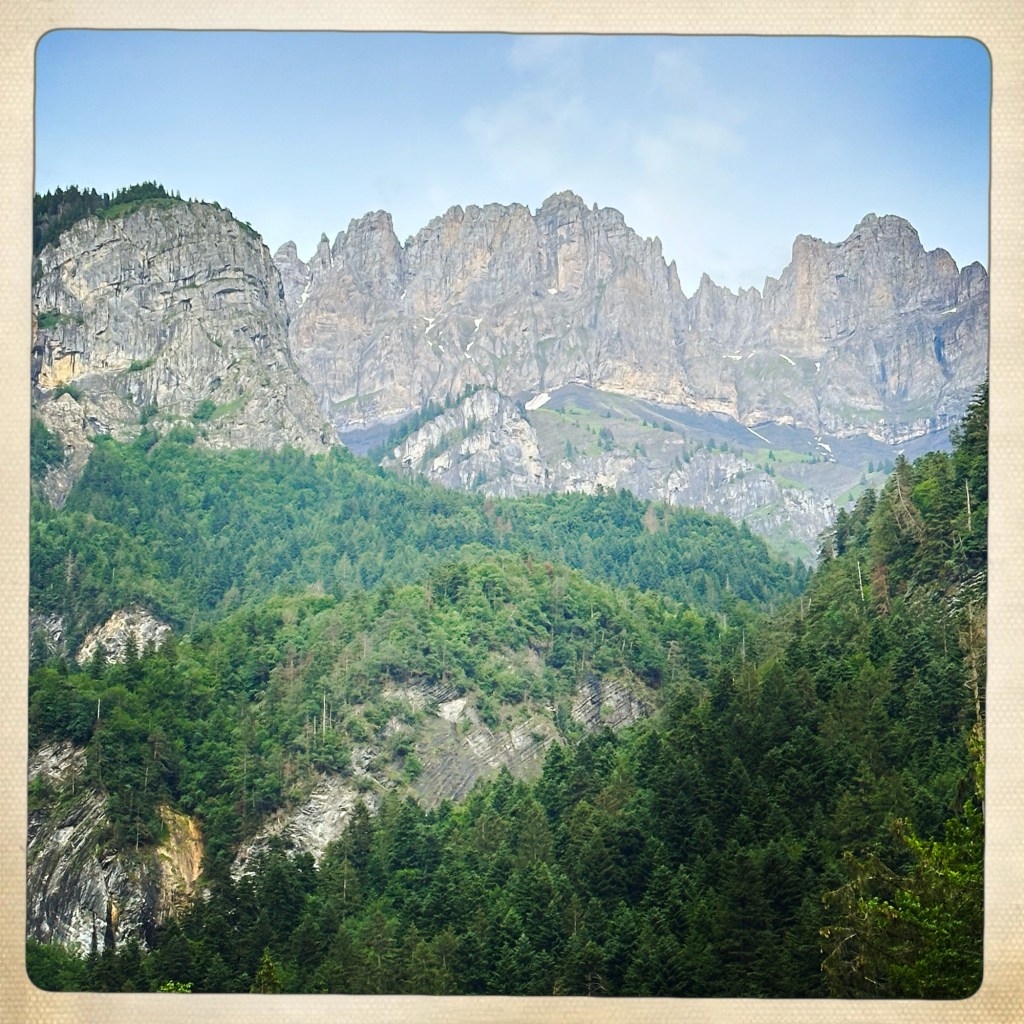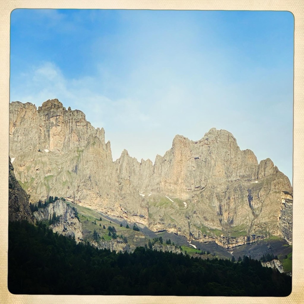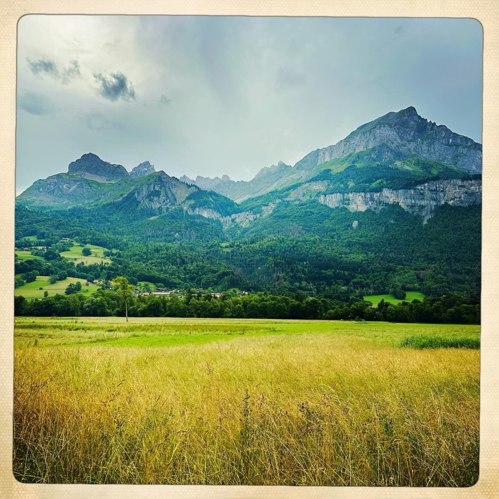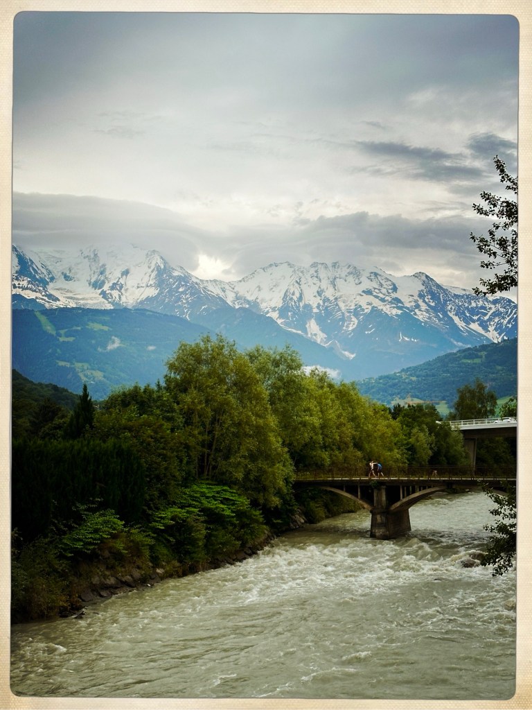 Me voilà donc à déambuler dans Sallanches la tête en l’air car les MONTAGNES ! Et la lumière post orage qui change toutes les 40 secondes… bref… c’est chouette.