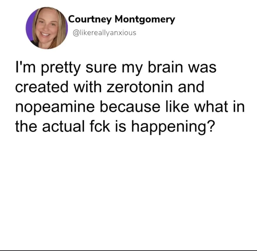 Je fais toutefois en sorte de ne pas me leurrer, de ne crier ni à la joie ni au loup et de ne pas trop prendre la conf. Je surfe périlleusement cette vague fragile en attendant que la logique psychique suive la tactique chimique. (Et la therapipi de chat… même si en vrai c’est cool).